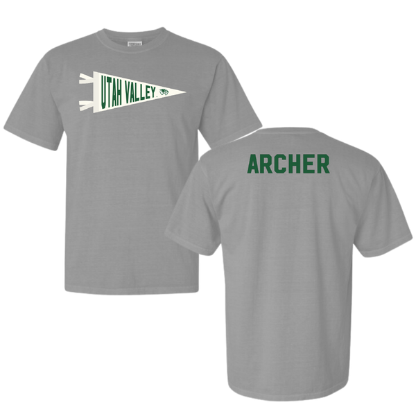 Utah Valley University TF and XC Light Gray Pennant Comfort Colors Tee - Isaiah Archer
