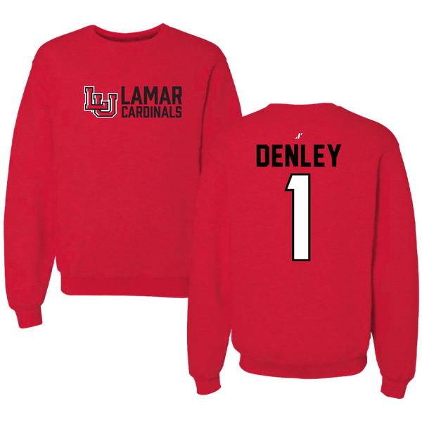 Lamar University Basketball Red General Crewneck - #1 Jacei Denley