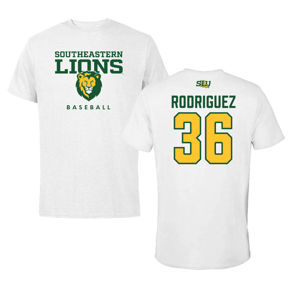 Southeastern Louisiana University Baseball White Tee - #36 Jackson Rodriguez