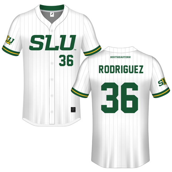 Southeastern Louisiana University White Pinstripe Button-Down Jersey - #36 Jackson Rodriguez