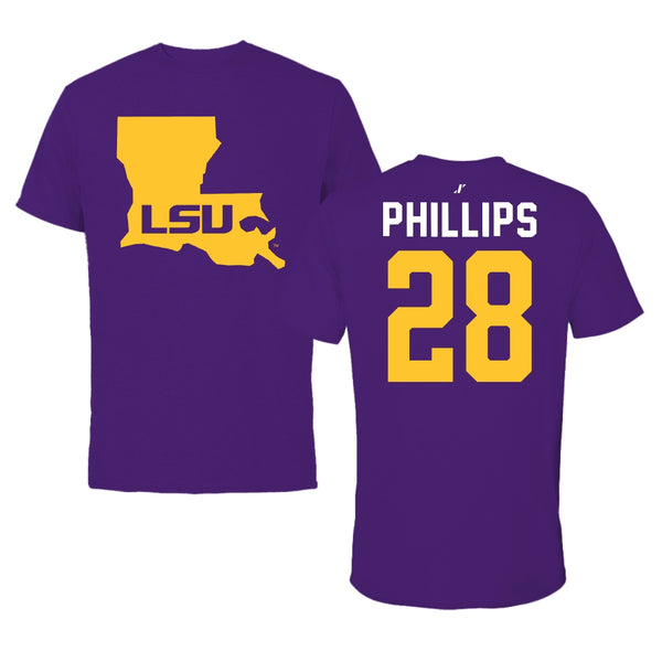 Louisiana State University Softball Purple State Tee - #28 Jada Phillips