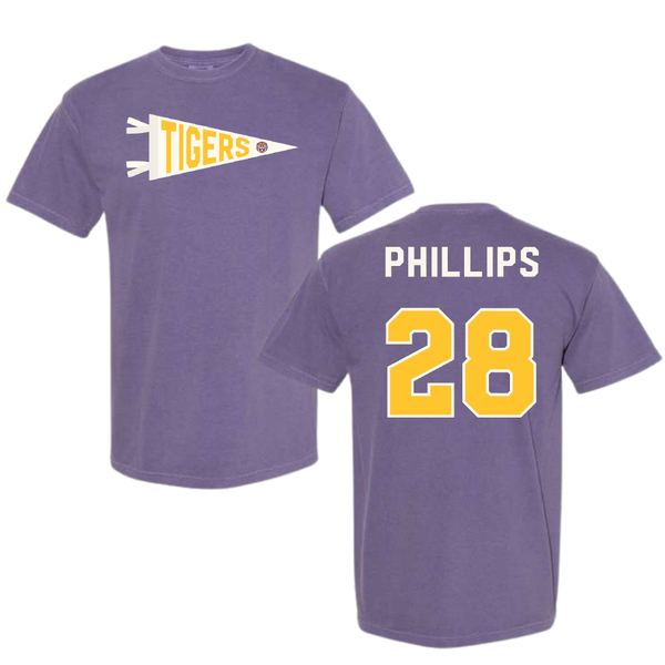 Louisiana State University Softball Purple Pennant Comfort Colors Tee - #28 Jada Phillips