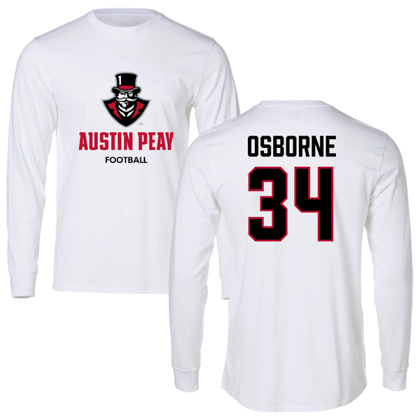 Austin Peay State University Football White Long Sleeve - #34 Jahlin Osborne