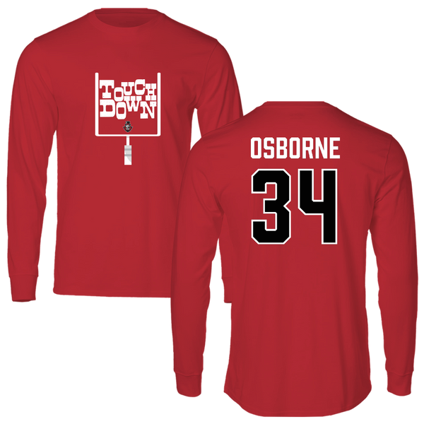 Austin Peay State University Football Red Touchdown Long Sleeve - #34 Jahlin Osborne
