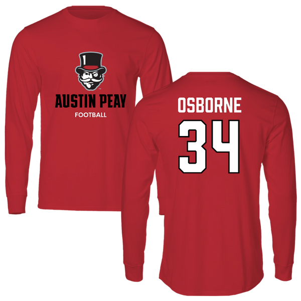 Austin Peay State University Football Red General Long Sleeve - #34 Jahlin Osborne