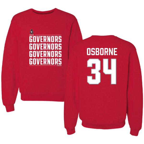 Austin Peay State University Football Red General Crewneck - #34 Jahlin Osborne
