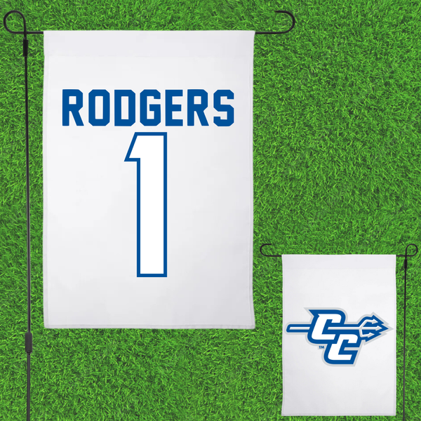 Central Connecticut State University Basketball White Garden Flag - #1 Jay Rodgers