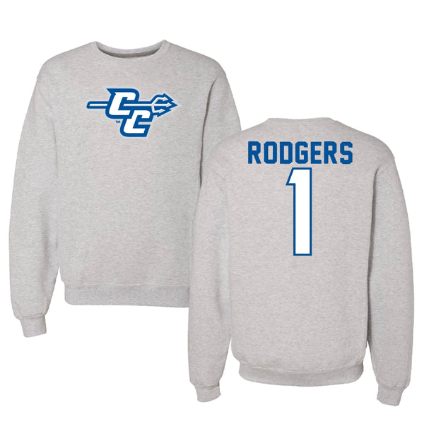 Central Connecticut State University Basketball Light Gray Crewneck - #1 Jay Rodgers