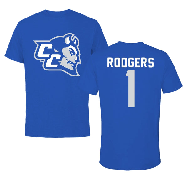 Central Connecticut State University Basketball Blue Tee - #1 Jay Rodgers
