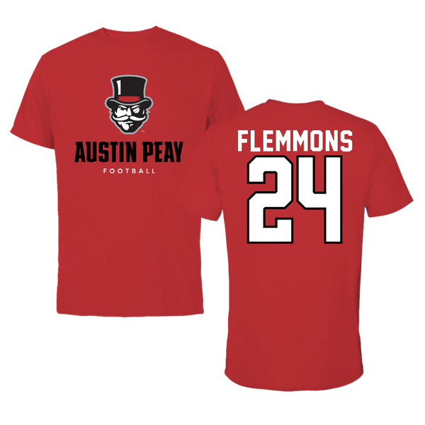 Austin Peay State University Football Red General Tee - #24 Jeremiah Flemmons