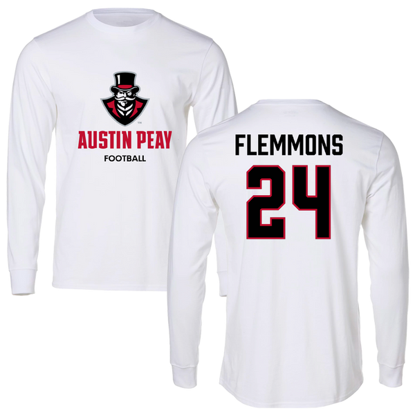 Austin Peay State University Football White Long Sleeve - #24 Jeremiah Flemmons