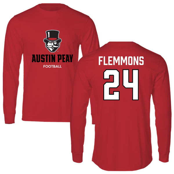 Austin Peay State University Football Red General Long Sleeve - #24 Jeremiah Flemmons