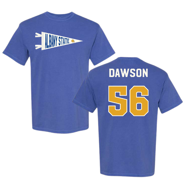 Albany State University Football Blue Pennant Comfort Colors Tee - #56 Jimmy Dawson
