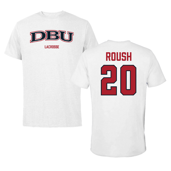 Dallas Baptist University Lacrosse (M) White Tee - #20 Jonah Roush