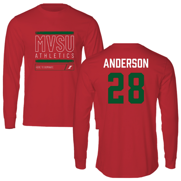 Mississippi Valley State University Football Red Dominate Performance Long Sleeve - #28 Jordan Anderson