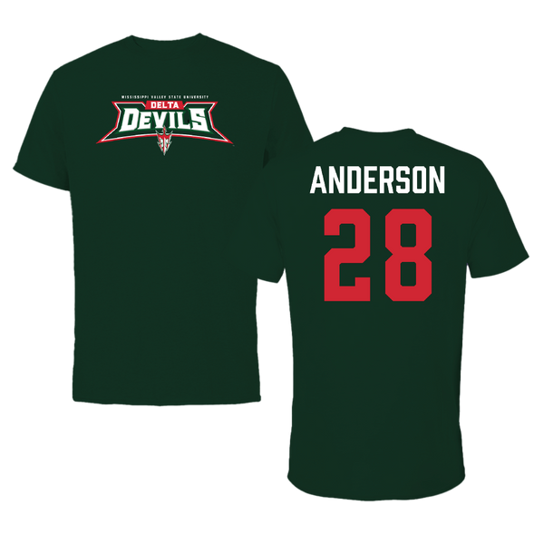 Mississippi Valley State University Football Forest Green Tee - #28 Jordan Anderson