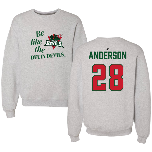 Mississippi Valley State University Football Light Gray Be Like Us Crewneck - #28 Jordan Anderson
