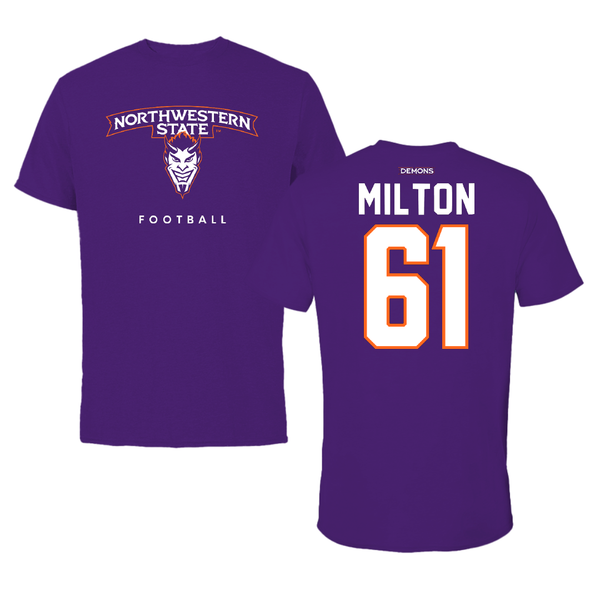 Northwestern State University Football Purple Touchdown Tee - #61 Joseph Milton