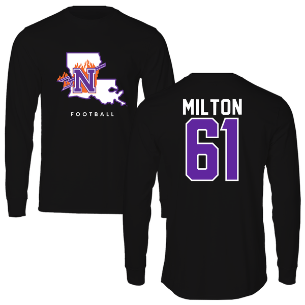 Northwestern State University Football Black Block Long Sleeve - #61 Joseph Milton