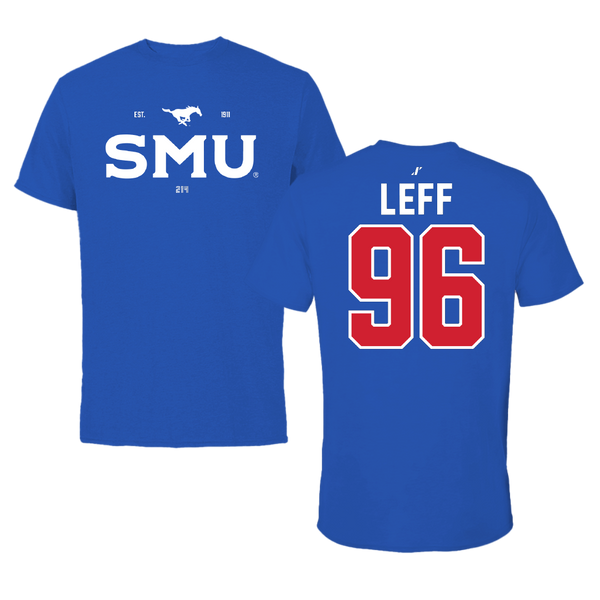 Southern Methodist University Football Blue Mascot Tee - #96 Josh Leff