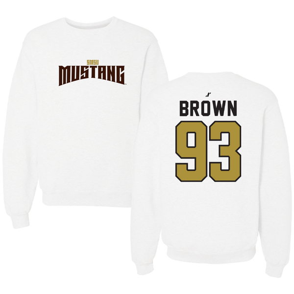 Southwest Minnesota State University Football White Classic Crewneck - #93 Julius Brown