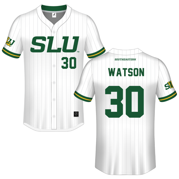 Southeastern Louisiana University White Pinstripe Button-Down Jersey - #30 Ka’Lyn Watson