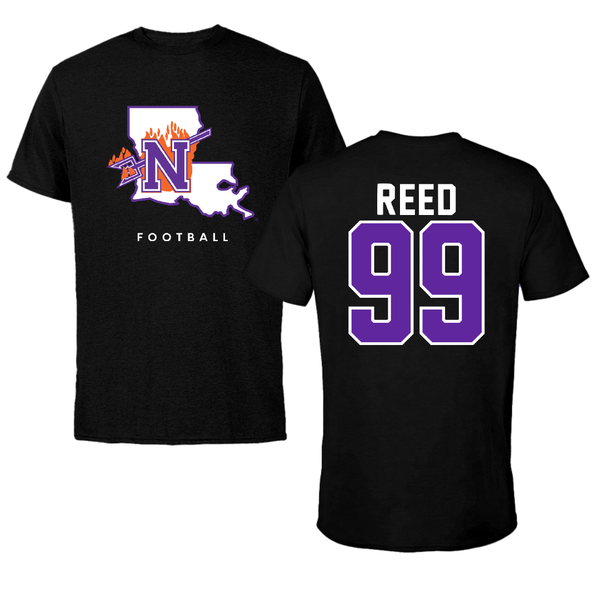 Northwestern State University Football Black Block Tee - #99 Ke’Shawn Reed