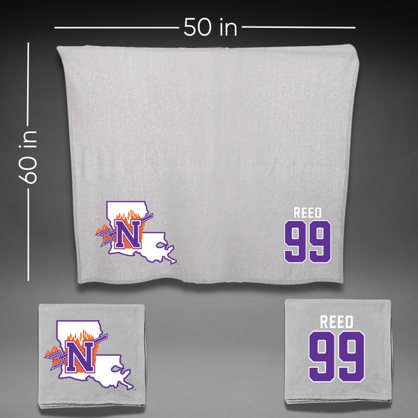 Northwestern State University Football Gray Blanket - #99 Ke’Shawn Reed