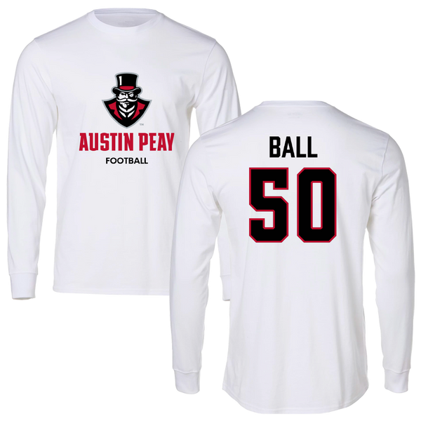 Austin Peay State University Football White Long Sleeve - #50 Kendyle Ball