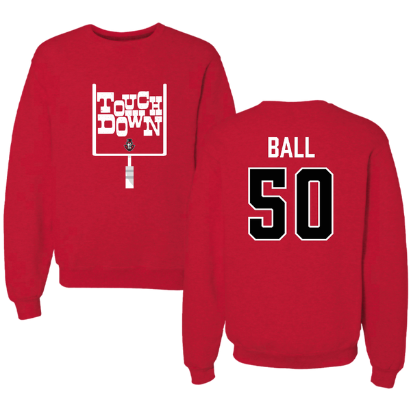 Austin Peay State University Football Red Touchdown Crewneck - #50 Kendyle Ball