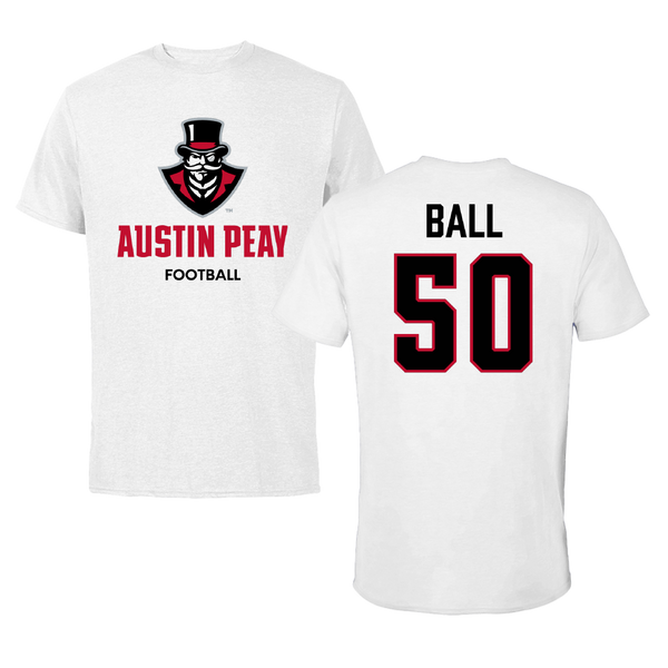 Austin Peay State University Football White Tee - #50 Kendyle Ball