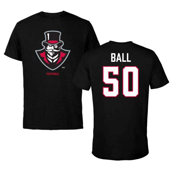 Austin Peay State University Football Black Tee - #50 Kendyle Ball