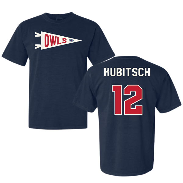 Florida Atlantic University Soccer Navy Pennant Comfort Colors Tee - #12 Kevin Kubitsch