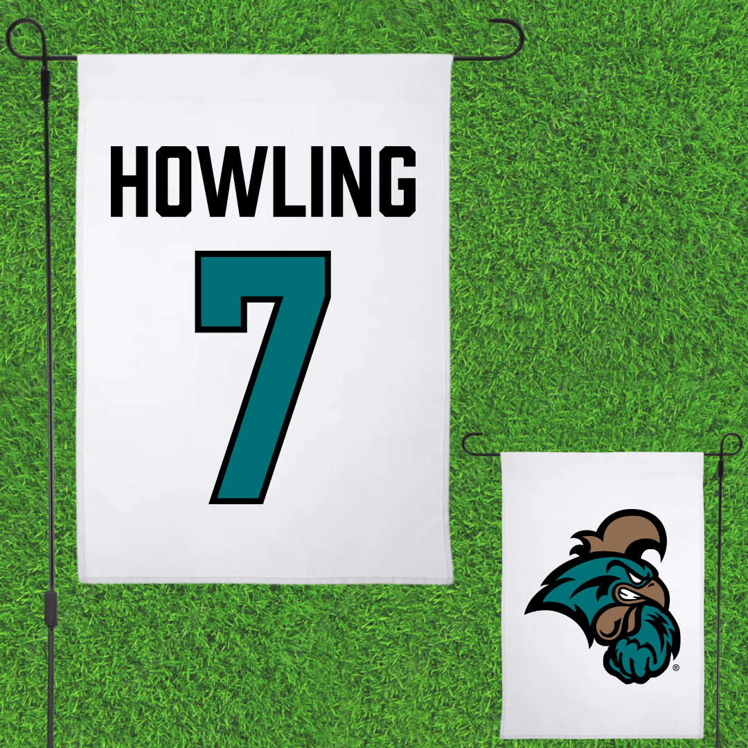 Coastal Carolina University Football White Garden Flag - #7 Larell Howling
