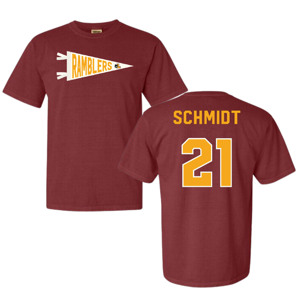 Loyola University-Chicago Soccer Maroon Pennant Comfort Colors Tee - #21 Maggie Schmidt
