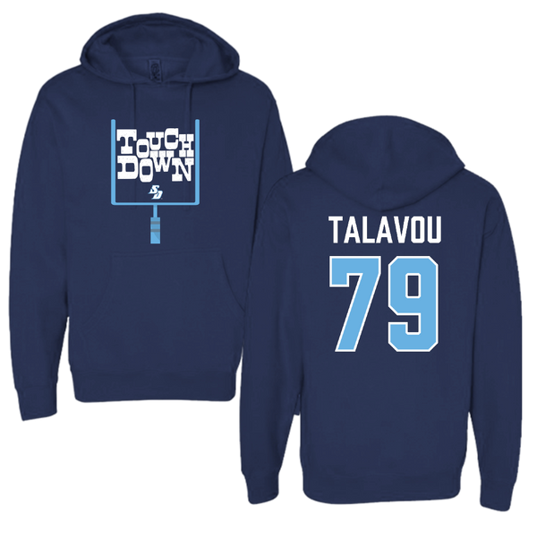 University of San Diego Football Navy Touchdown Hoodie - #79 Maicah Talavou