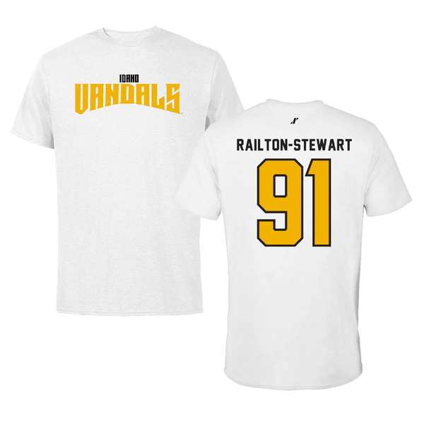 University of Idaho Football White Vandals Tee - #91 Malakai Railton-Stewart