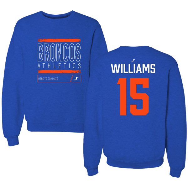 Boise State University Football Blue Dominate Crewneck - #15 Malakai Williams