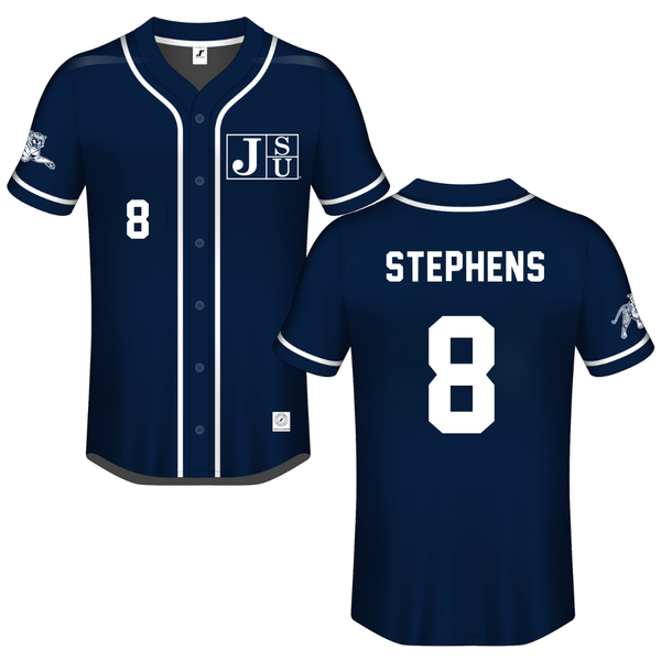Jackson State University Navy Button-Down Jersey - #8 Mari Stephens