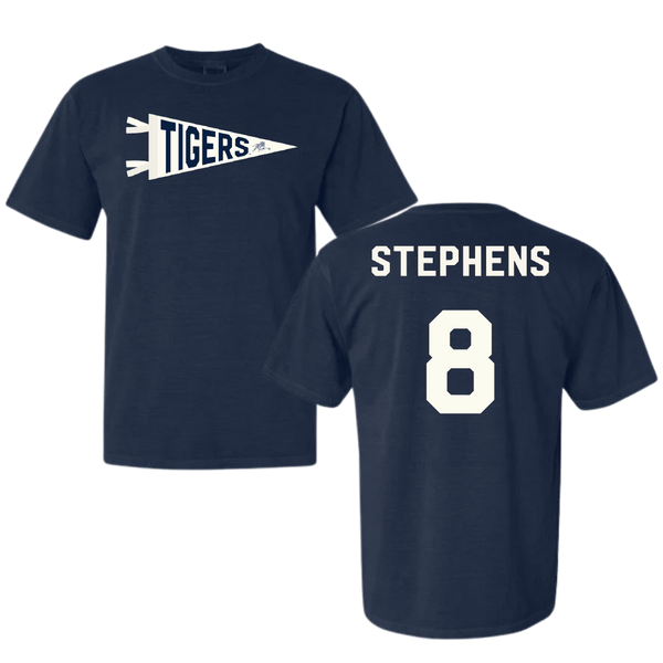 Jackson State University Softball Navy Pennant Comfort Colors Tee - #8 Mari Stephens