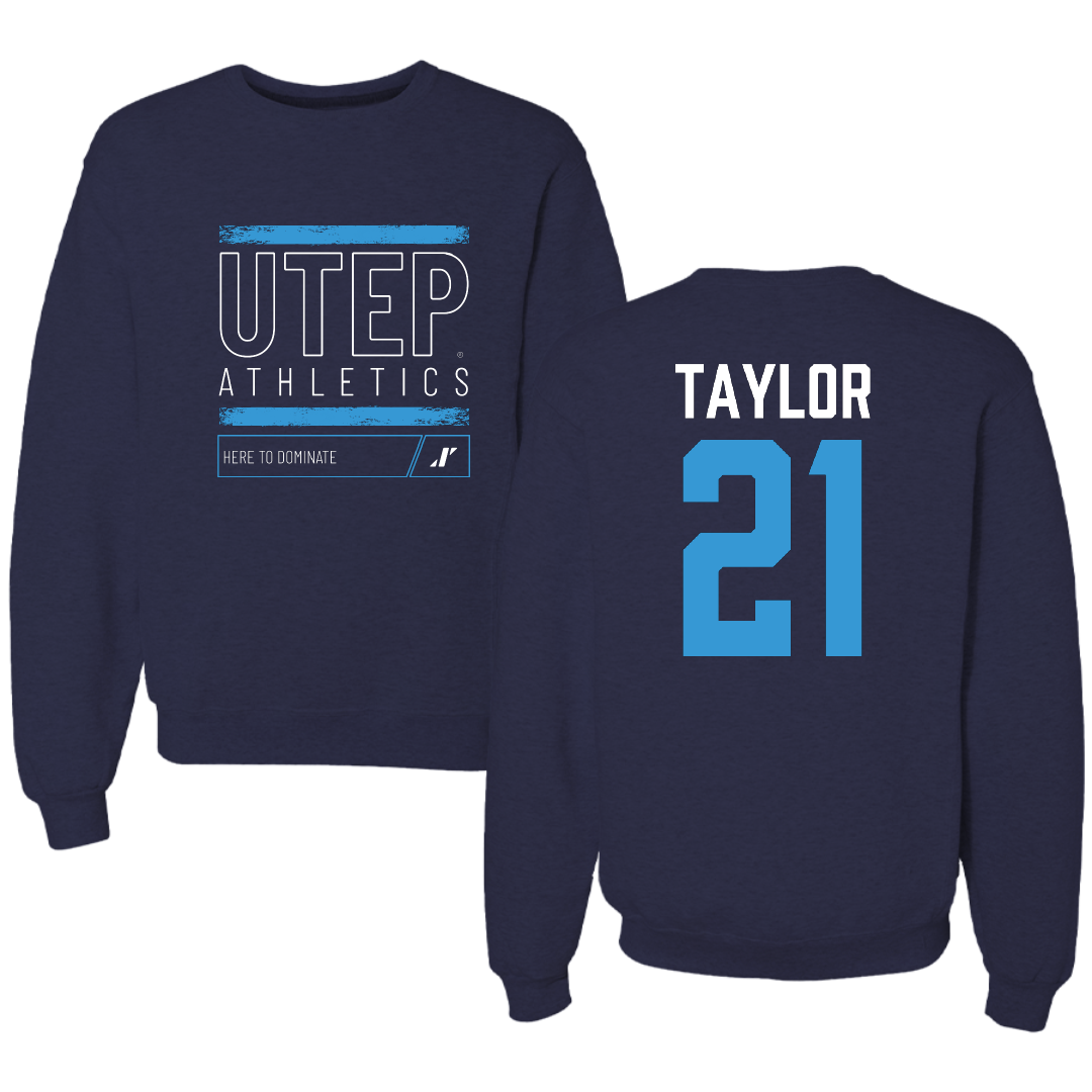 University of Texas at El Paso Football Navy Dominate Crewneck - #21 Marquez Taylor
