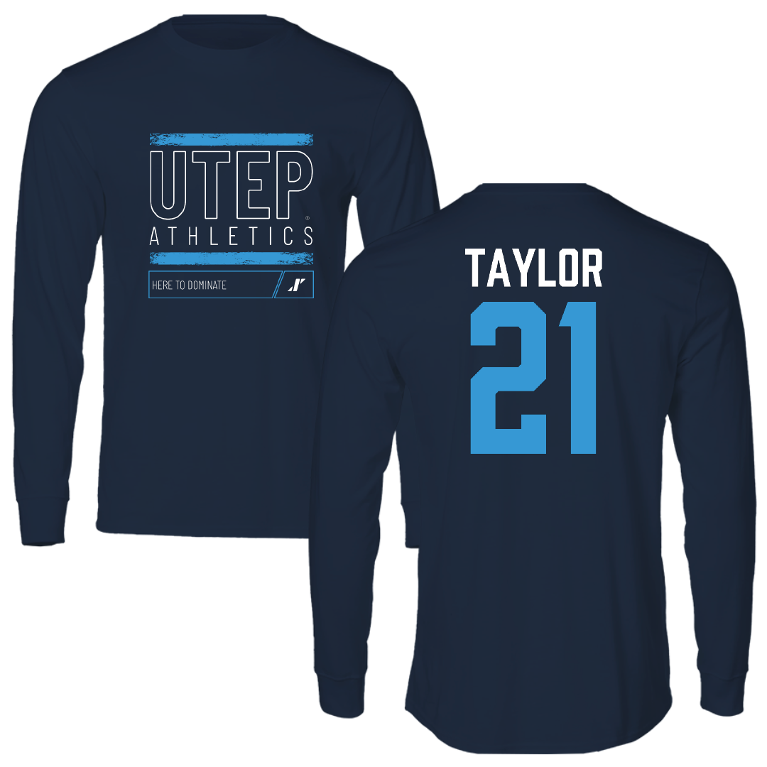 University of Texas at El Paso Football Navy Dominate Performance Long Sleeve - #21 Marquez Taylor