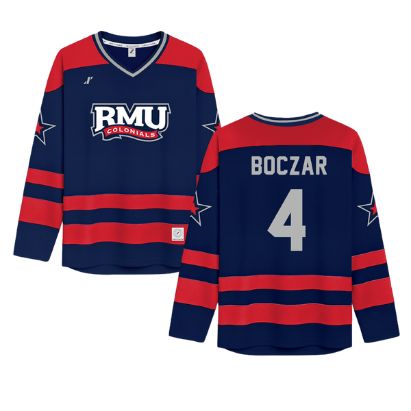 Robert Morris University Navy Hockey Jersey - #4 Matt Boczar