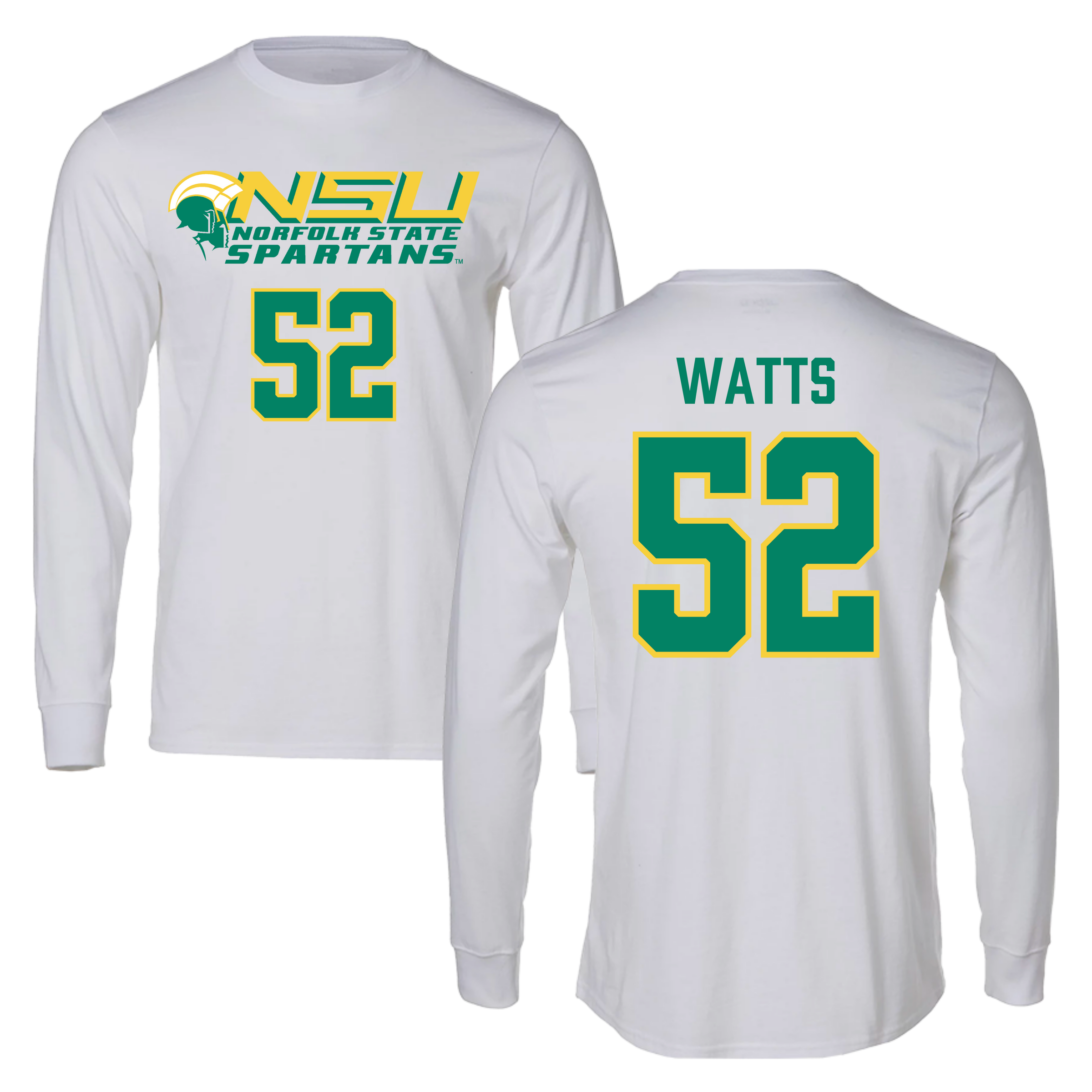 Norfolk State University Football White Long Sleeve - #52 Matthieu Watts