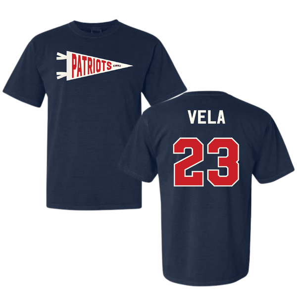 Dallas Baptist University Soccer Navy Pennant Comfort Colors Tee - #23 Mckenna Vela