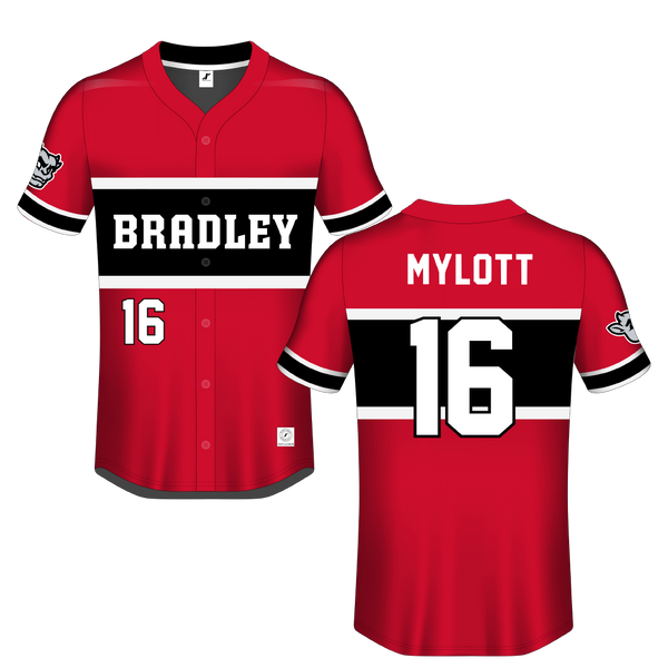 Bradley University Red Button-Down Jersey - #16 Michael Mylott