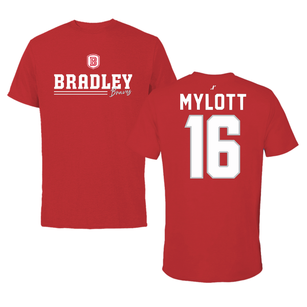Bradley University Baseball Red Block Tee - #16 Michael Mylott