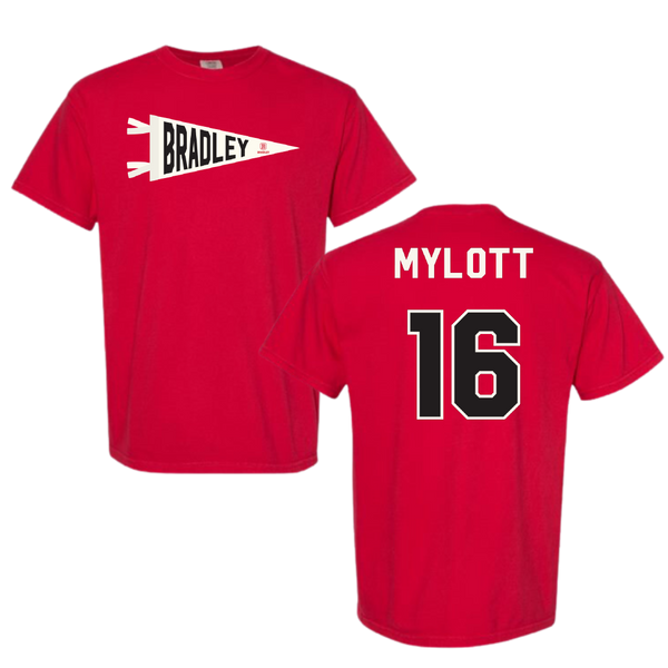 Bradley University Baseball Red Pennant Comfort Colors Tee - #16 Michael Mylott