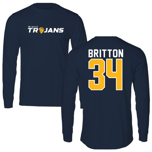 North Iowa Area Community College Baseball Navy Long Sleeve - #34 Mitchell Britton