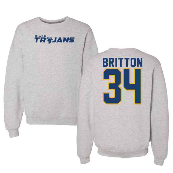 North Iowa Area Community College Baseball Gray Crewneck - #34 Mitchell Britton
